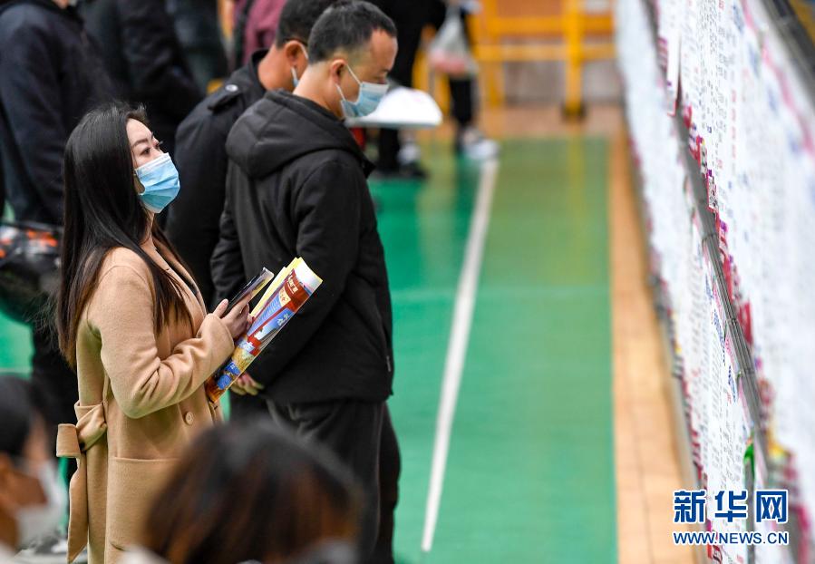 3月6日,求職包養網者在僱用會現場不雅看僱用包養信息。