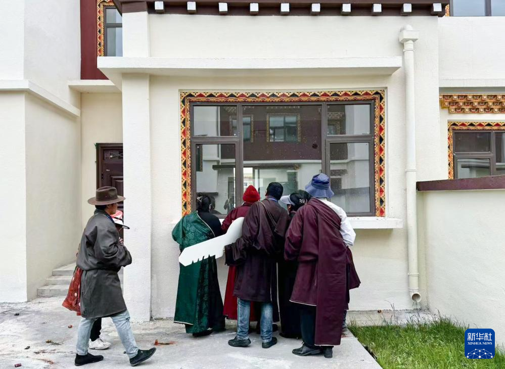 8月10日,在色達縣色柯鎮信義區 水電約若新村,牧平易近們在看新房。